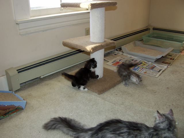 Again, you'll have to accept these pictures as is. Too busy to post descriptions, same as the 4 week pictures (which I admit Im late posting!). At 5 weeks of age they are eating solid food (enthusiactically, too!) and using the litterbox. It's amazing how fast that happened.