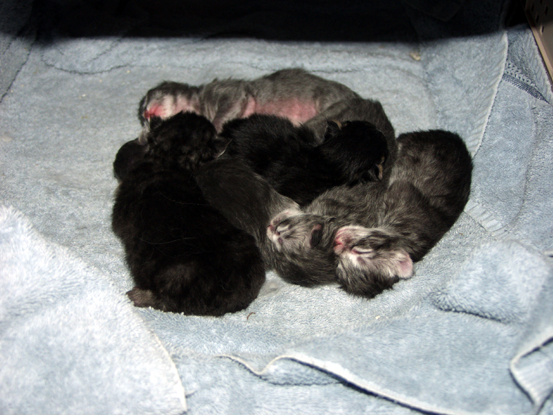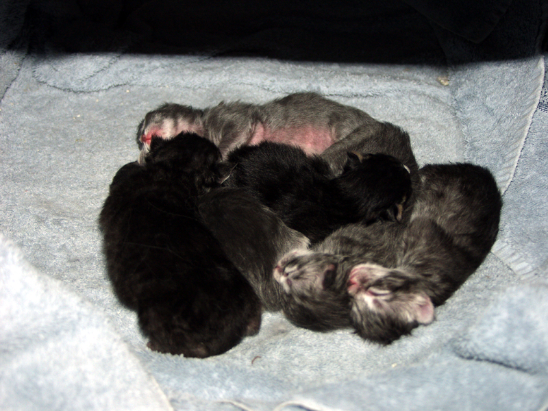 Luna had her second litter of kittens on Labor Day, September 1 2008! Here's one pic of them on day one at 12 hours old.